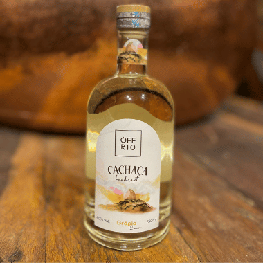 OFF RIO Grápia 2 anos, nos chama a atenção por ser uma madeira pouco usual no meio da cachaça. O destaque dessa combinação brasileira, além de um leve reflexo dourado em sua tonalidade, é o aroma adocicado com nuances de derivados de cana, como o melaço ou melado, mas toda a surpresa está no paladar. Uma entrada macia e de corpo médio, surpreende com uma leve picancia, um sutil toque de canela. A sensação ao final da experiência é de refrescância, trazendo a concordância do picante com a sensação de dulçor!